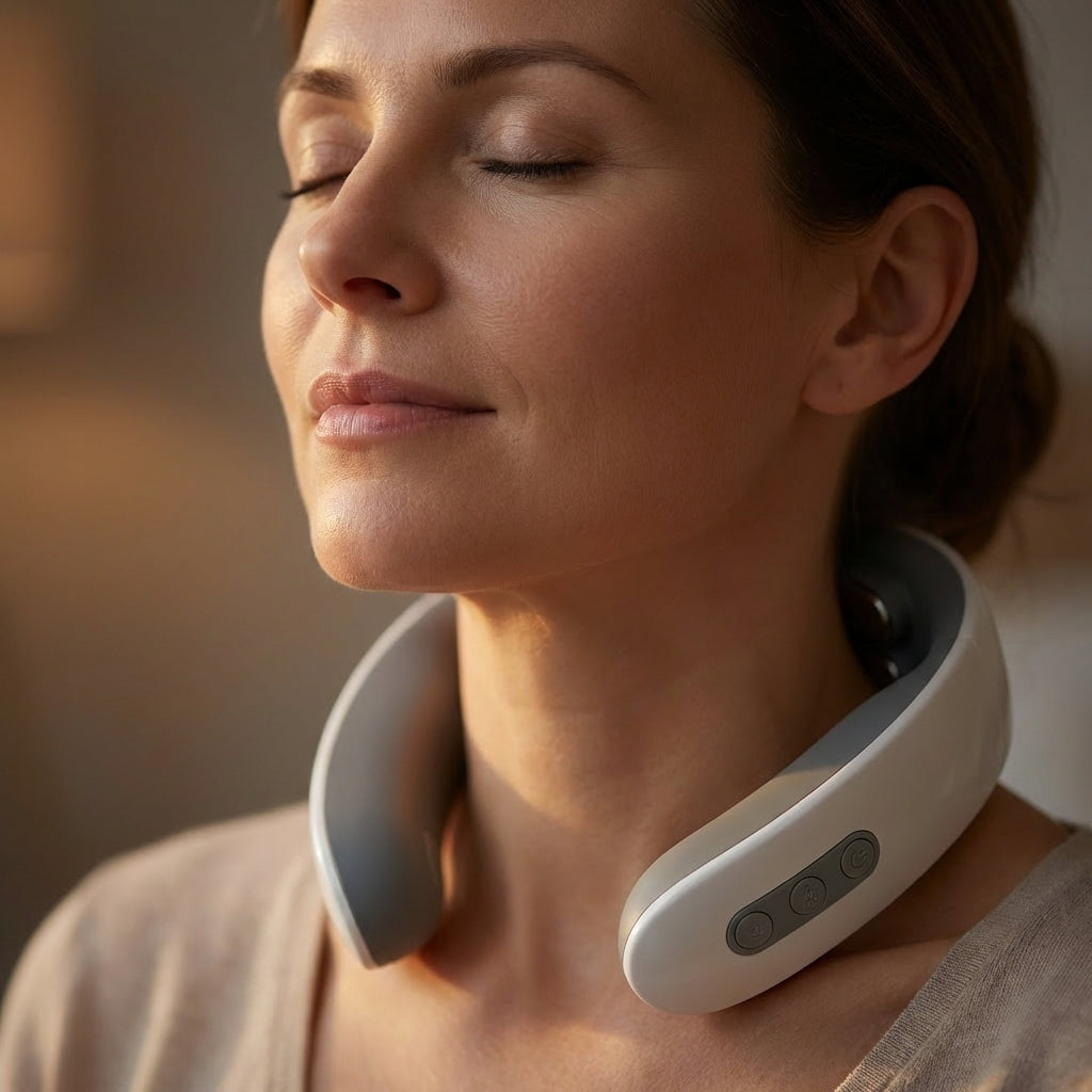 Rien de plus simple ! Léger et sans fil, il se glisse autour de votre cou en un geste. Vous pouvez l'utiliser tout en lisant, en travaillant ou en vous relaxant. Une seule séance de 15 minutes suffit pour transformer votre bien-être physique, sans avoir besoin de prendre rendez-vous.